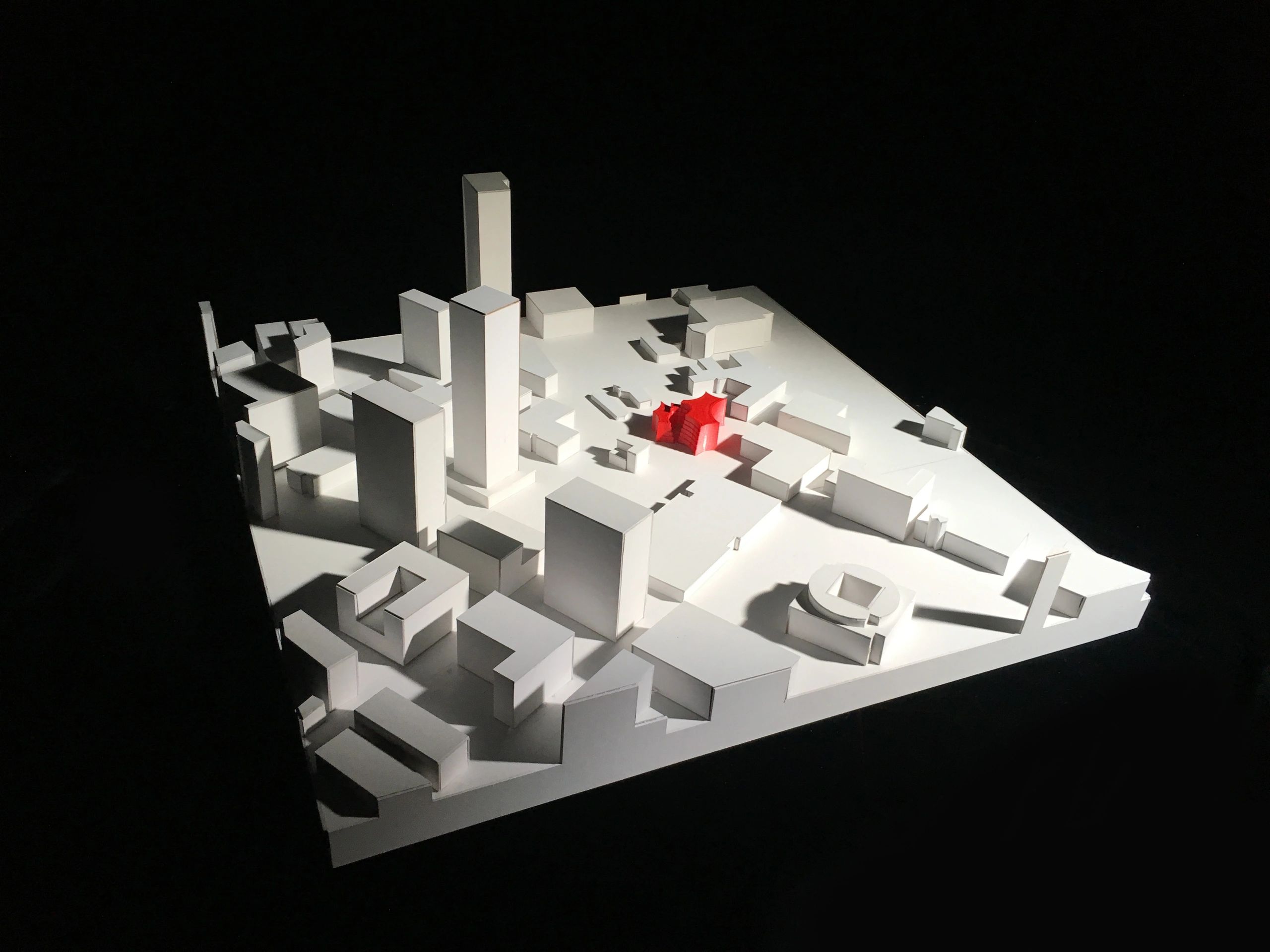This design addresses surrounding issues such as the lack of public space and shade by providing a shaded courtyard. This addition also references the original library by having the new entrance directly adjacent to it..
